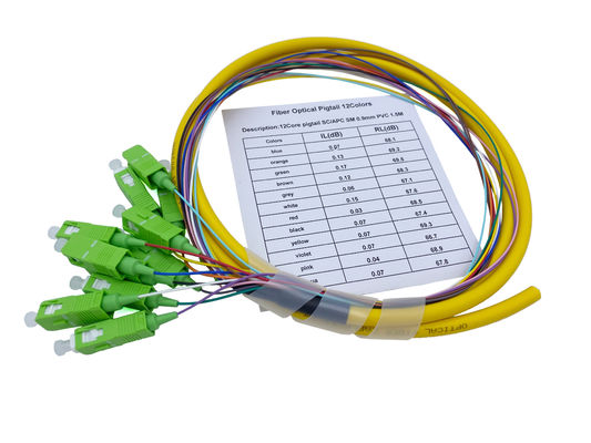 12 Faser-Optikbündel-Zöpfe G652D Kerne Sc APC gelbe FTTH Schalttafel PVCs 900um 1.5Mts